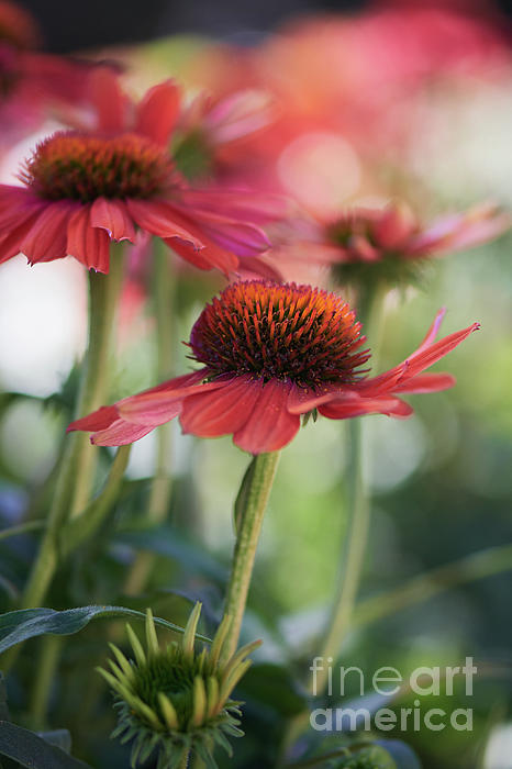 A shining Pink Coneflower. A close up macro image of this flowering pink coneflower stands tall swaying in the wind with it's nature bokeh and... more