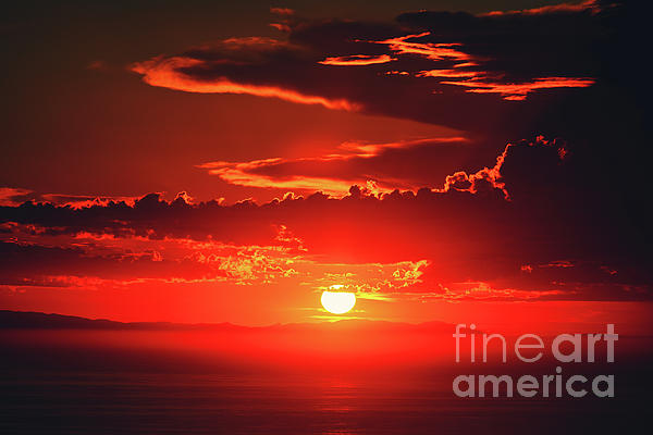As the fiery sun sinks into the Pacific, it sets the sky ablaze with a radiant glow that pierces the clouds over Catalina Island. Abigail Diane Photography captured this fleeting moment of natural wonder in a fine art print that brings the warmth and wonder of a Southern California sunset into your home. Burnt orange clouds are edged with the golden light of the setting sun, illuminating the open sea and silhouetting the island on the horizon. The atmosphere is infused with a warm red glow that softens the landscape. This vivid seascape print harnesses the beauty and ephemeral quality of a sunset at sea, reminding us that the most magical moments in nature are often the most fleeting. So take in the view, breathe in the salty sea air and make a wish! This sunset was made for dreaming. Each print is made with archival inks on museum-grade paper, ensuring your little slice of Catalina paradise will stay with you for years to come.