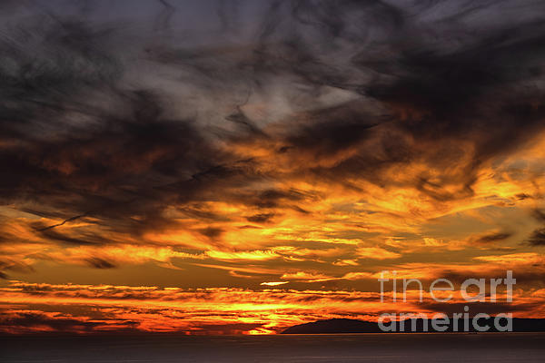 Some sunsets quietly slip into the night, but not this one. Abigail Diane’s “Gleaming Golden Treasure Sunset” is a sky ablaze with drama, as molten gold sunlight ignites billowing black clouds over the Pacific. The silhouette of Catalina Island stands in stark relief against the pyrotechnics unfolding around it, a lone sentinel bracing against the dying light’s amber assault. There’s a cinematic quality to this vivid vista that stirs visions of old Hollywood glamor. You can almost hear the swelling violins as the sun sinks lower, lower, its golden gleam intensifying with each degree of descent. The fiery glow kindles your imagination, hinting at hidden treasures sunken just beneath the wine-dark sea. California dreamscapes don’t get more evocative than this. Hang it in your home, and whenever you gaze at its glowing grandeur, you’ll feel the pull of adventure calling you westward once more. After all, there are sunsets and then there are gleaming golden treasures and this...
